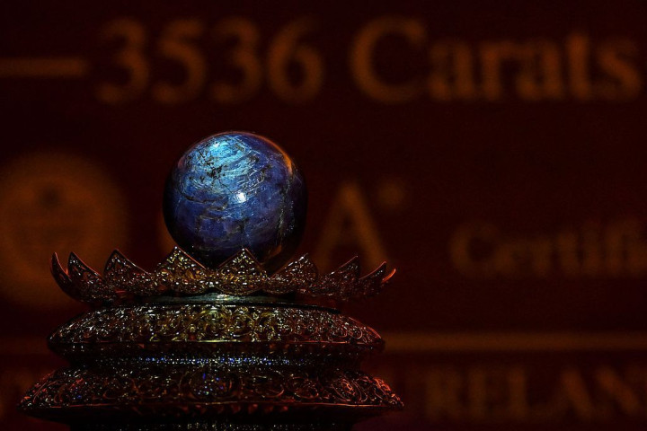 一枚3563克拉的紫星蓝宝石日前在斯里兰卡首都科伦坡公开展示,重量据称为同类宝石之最,预估售价在3亿美元以上。